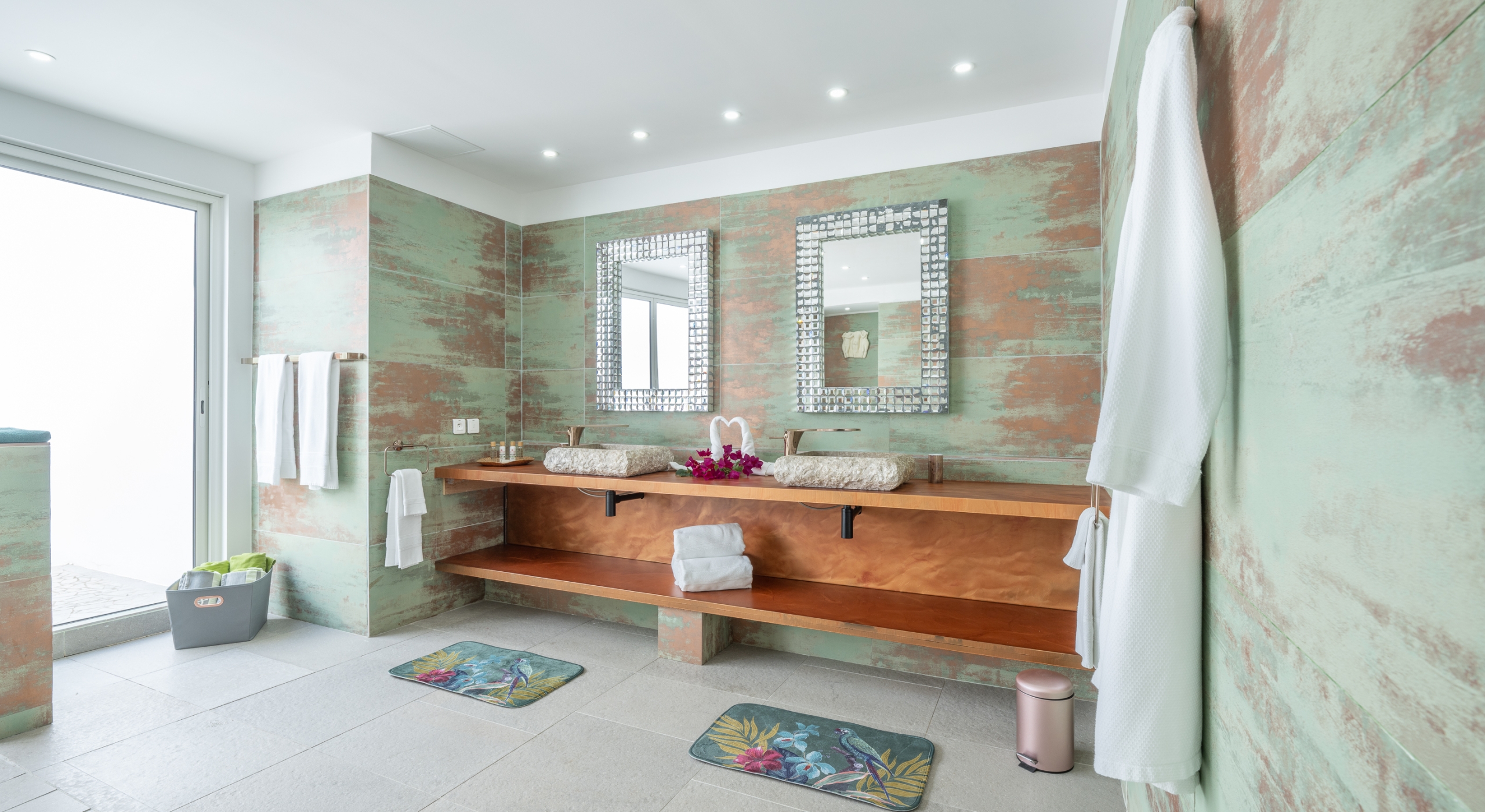 on the property walls, as well as the deck bar where you can sip sunset cocktails mixed by