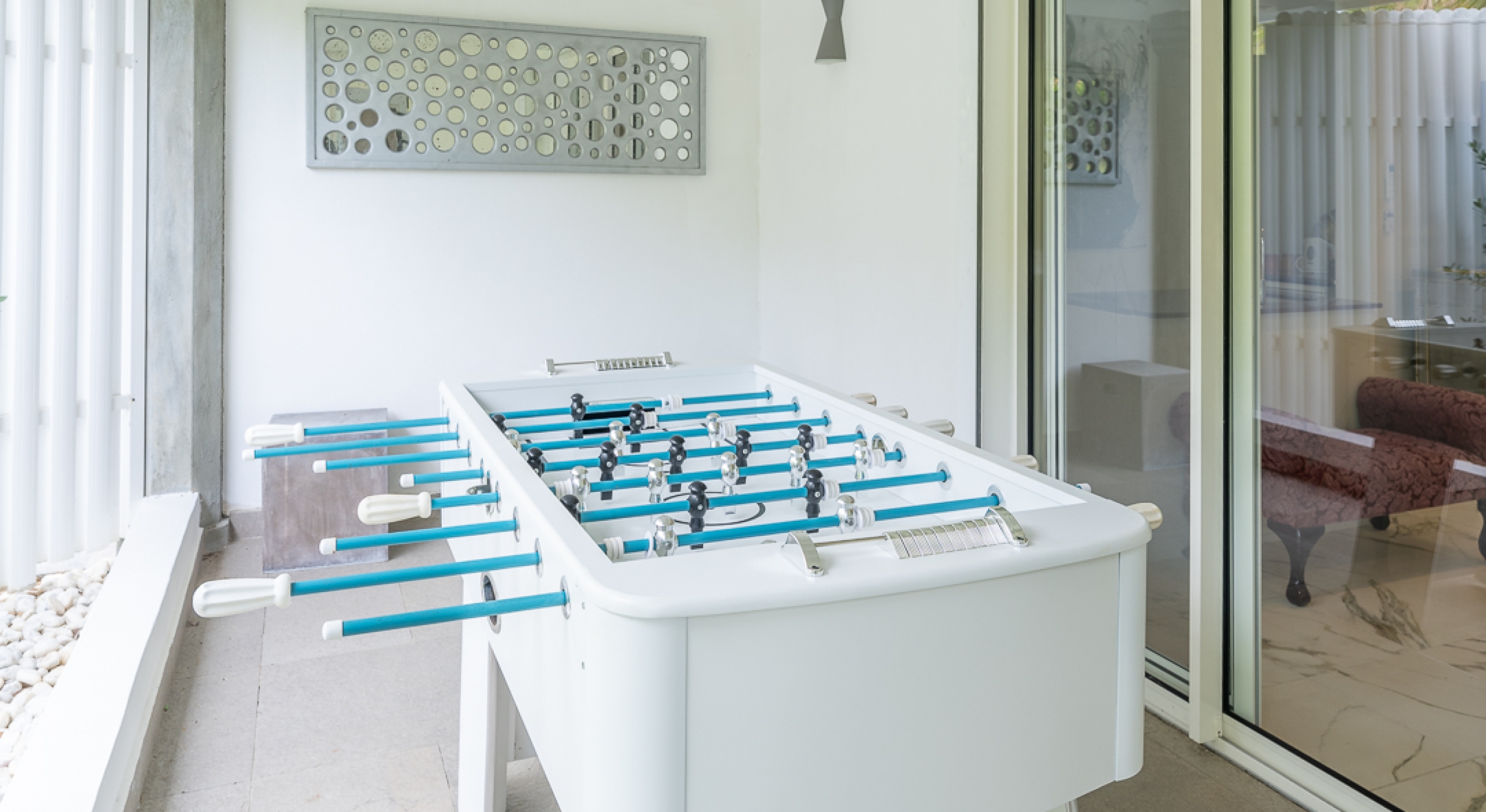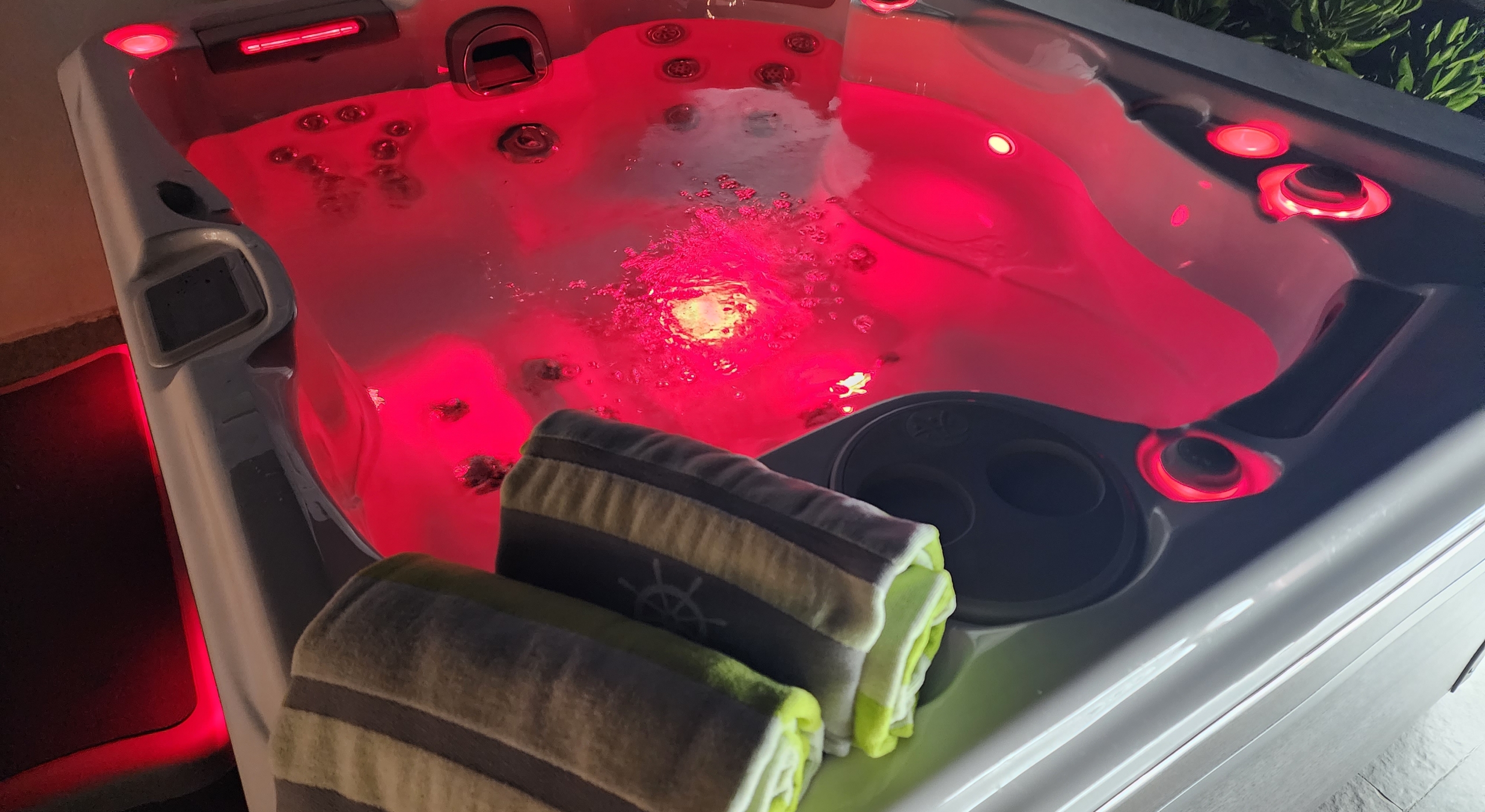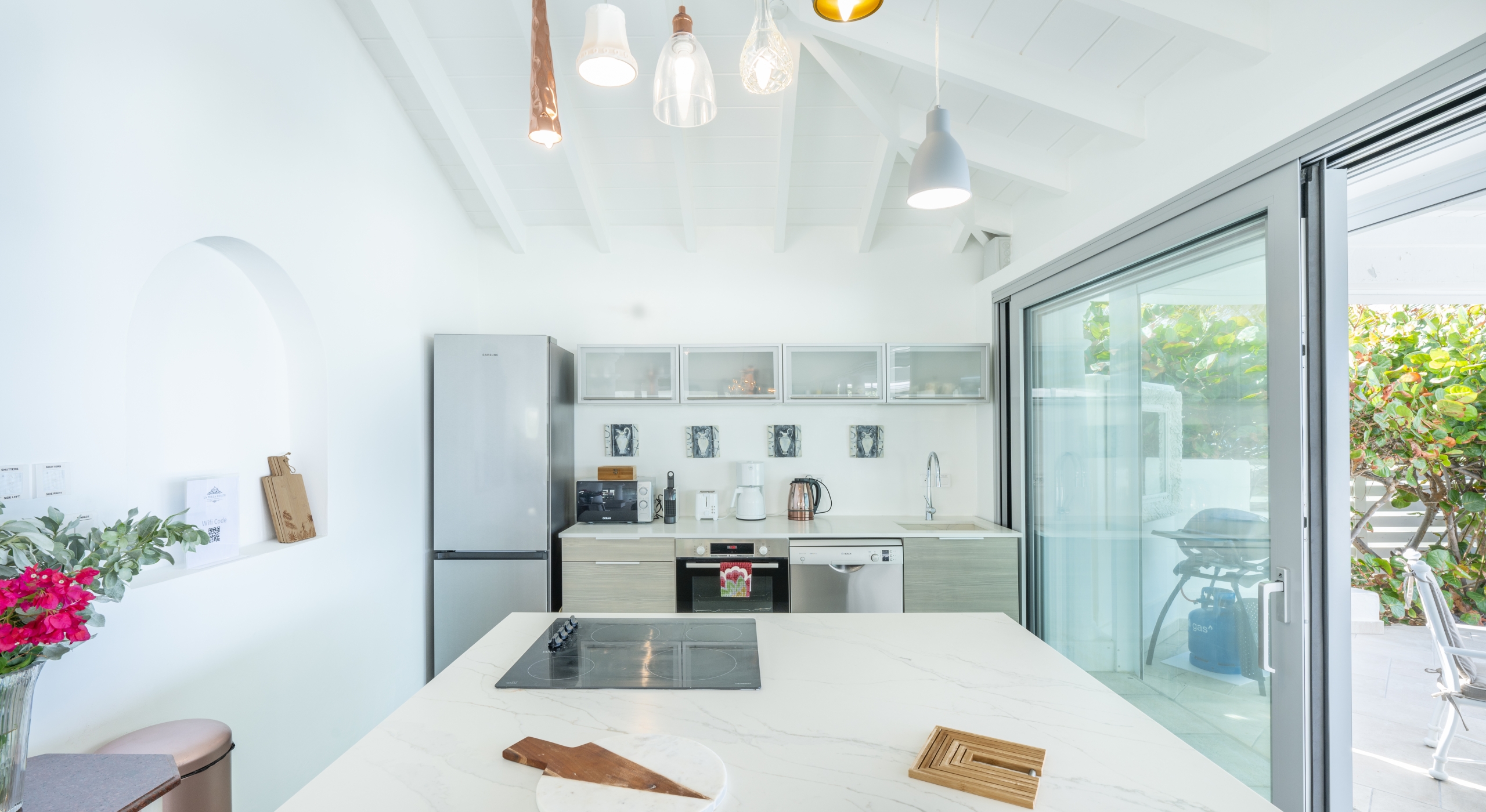 We’re confident you’ll also enjoy the villa’s indoor and outdoor speaker system and the LEDs